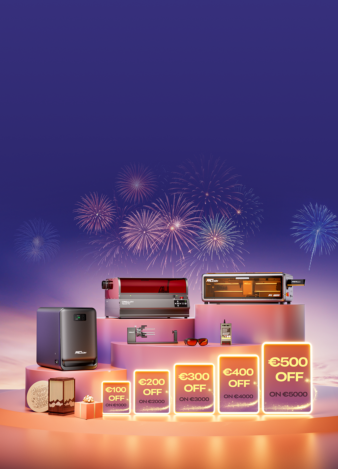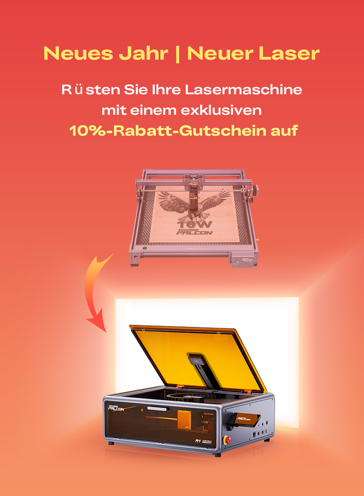 Jeder Kauf eines Laser-Gravierers der Falcon-Serie während dieses Sales beinhaltet ein kostenloses Material-Starterset. Dieses „Business-in-a-Box“-Kit wird automatisch Ihrem Warenkorb hinzugefügt, damit Sie sofort mit dem Geldverdienen beginnen können.
